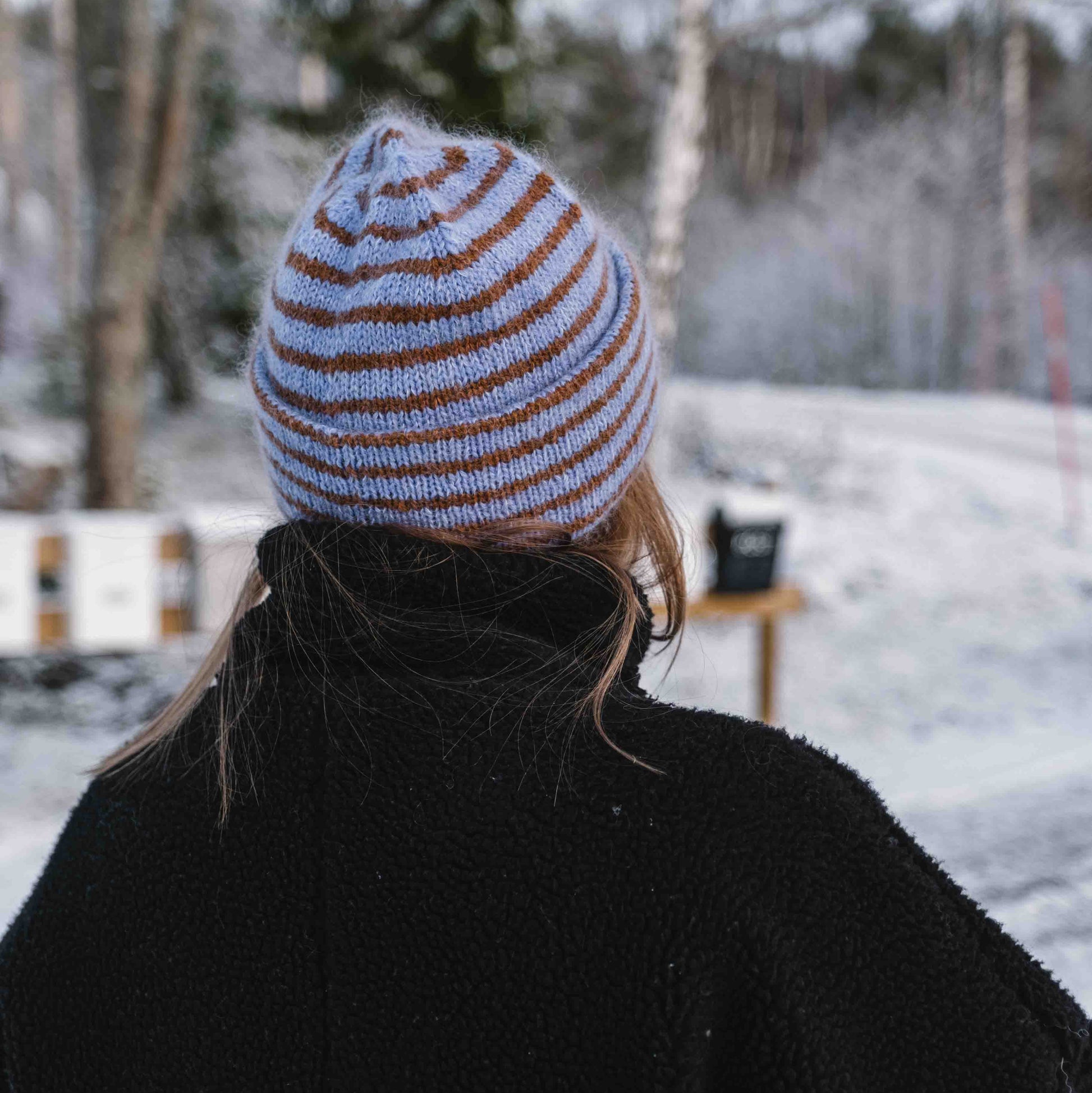 When the blanket is finished knitting, it is felted and is thus a warm blanket that fits perfectly in the pram during the colder months of the year. We recommend that you felt the blanket in the dryer, but it also works to feel the blanket in a washing machine or by hand.
